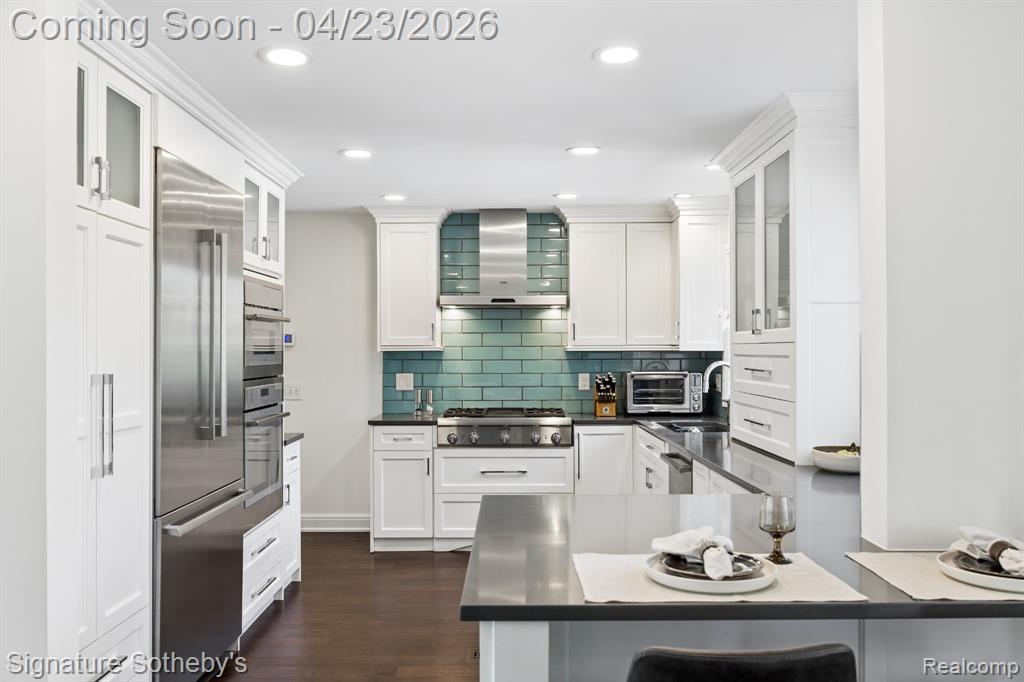 | Appliances: Vented Exhaust Fan,Water Purifier Owned,Built-In Gas Oven,Built-In Gas Range,Built-In Refrigerator,Dishwasher,Disposal,Dryer,Microwave,Range Hood,Stainless Steel Appliance(s),Washer,Bar Fridge |