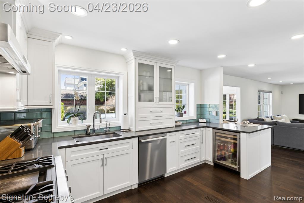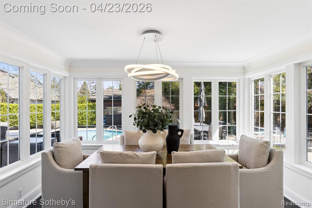 This fully renovated Birmingham residence offers 4 bedrooms, and 4full bathrooms, with a finished lower level that expands the overall living experience. Open-concept interiors flow seamlessly between the kitchen, dining, and living spaces, anchored by a cathedral stone fireplace and finished with hardwood flooring throughout. The kitchen is thoughtfully appointed with Thermador appliances and streamlined finishes. A built-in wet bar, complete with an ice maker, bar fridge, and custom cabinetry, creates a distinct and elevated setting for entertaining. The primary suite is thoughtfully arranged with generous closets and dressing room space and an adjoining flex room suited for a private office or lounge. The primary bath features dual sinks, a steam shower, heated floors and a deep soaking tub, creating a well-balanced, spa-like setting. The finished lower level extends the home with a full bathroom, additional bedrooms, gym area, and flexible spaces that can adapt to a variety of needs. Outside, a resort-style backyard creates a strong sense of privacy and ease, featuring a fully rebuilt gunite pool and spa, expansive paver patio, artificial turf, and landscaping designed for minimal outdoor maintenance. A gas firepit and integrated exterior sound system enhance the setting for entertaining or everyday enjoyment. An attached large 2-car garage is finished with an epoxy-coated floor and includes electric vehicle charging, while the expansive, curved driveway provides generous parking and a clean approach to the home. Extensive improvements include a new roof, 2024, James Hardie siding and gutters, Andersen windows, new Velux skylights, updated mechanical systems and a full house water filtration system. Located within walking distance of Downtown Birmingham, this home offers convenient access to dining, shopping, parks and schools and daily amenities while maintaining a private residential setting. |